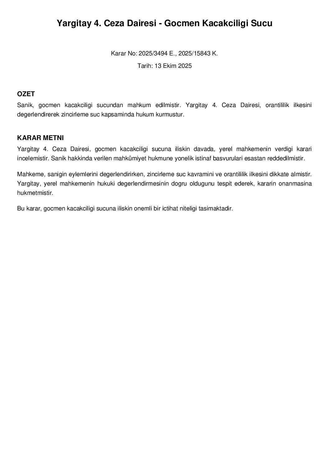 Bu karar, gocmen kacakciligi sucuna iliskin onemli bir ictihat niteligi tasimaktadir.